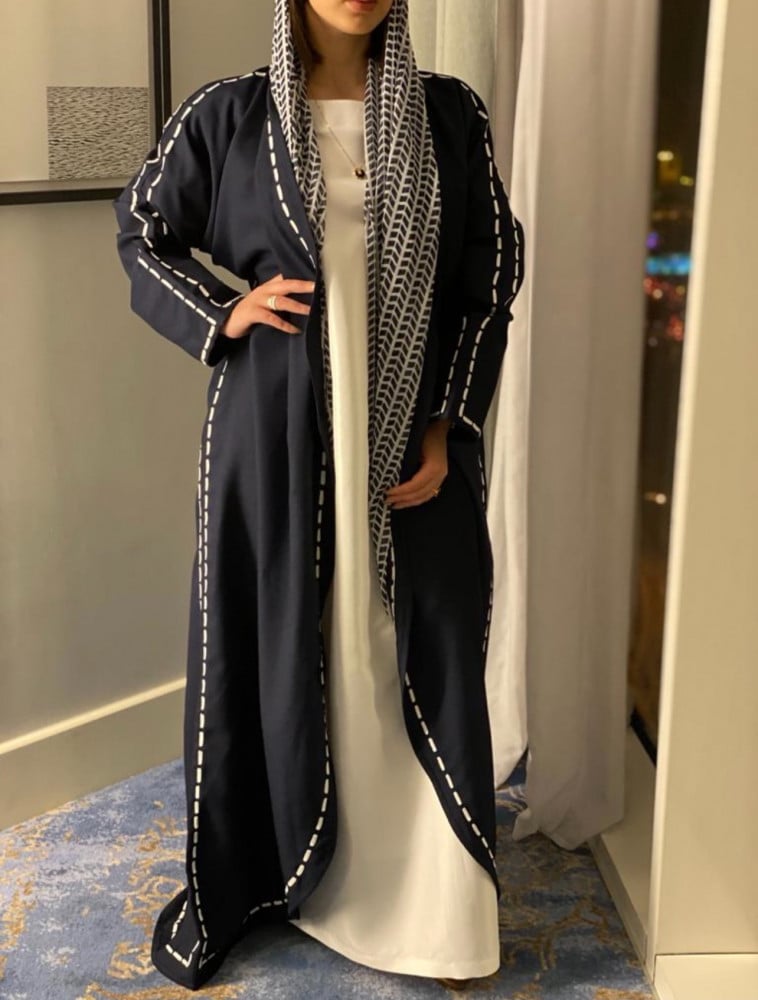 عباية صيفية عملية القماش تفته كحلي مع طر...
