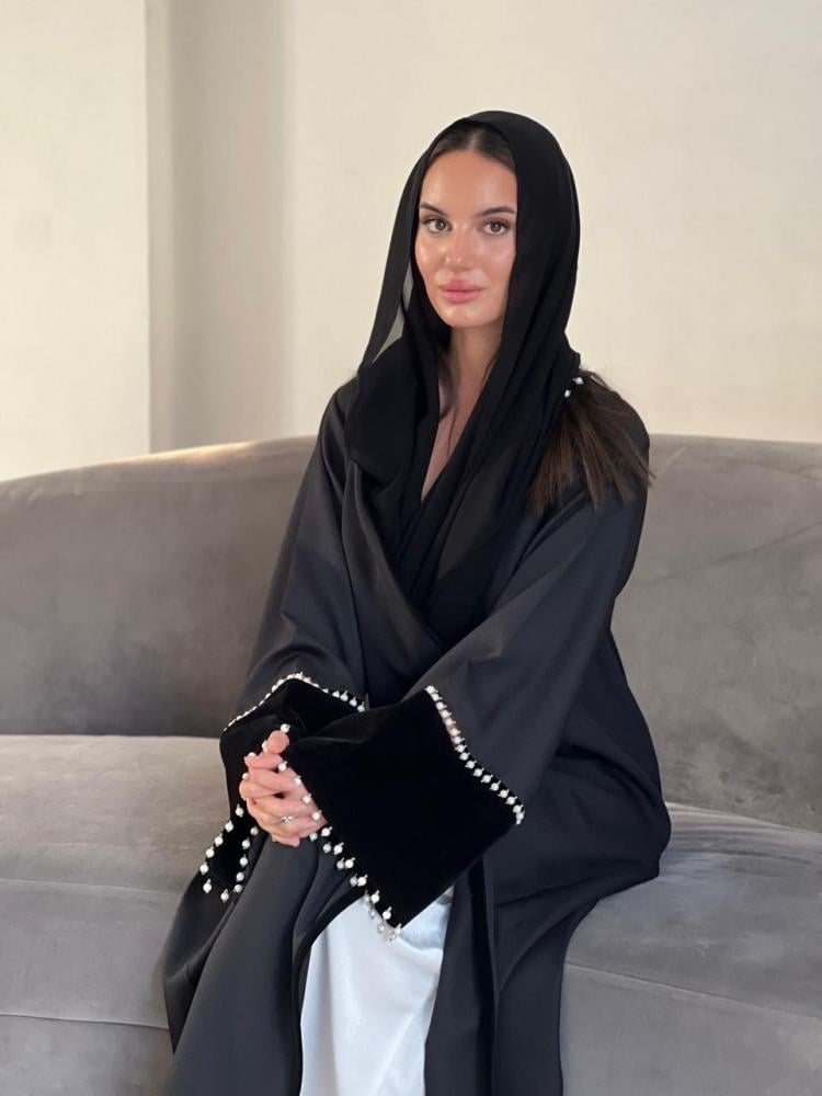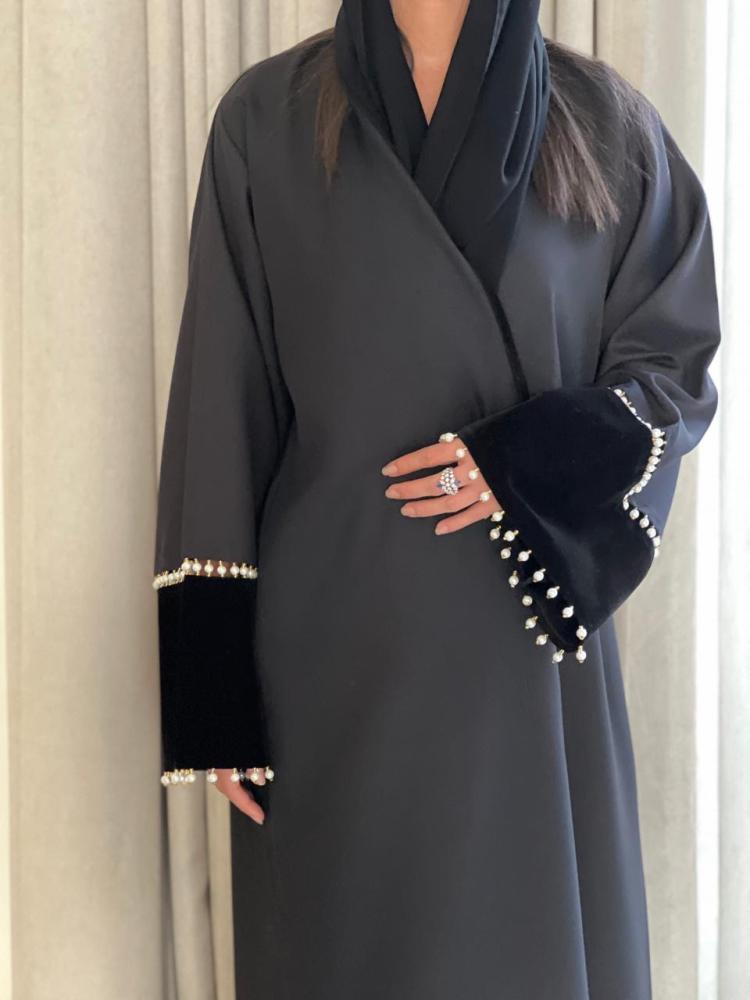 عباية مميزة القماش تفتة اسود وتقفل بسحاب