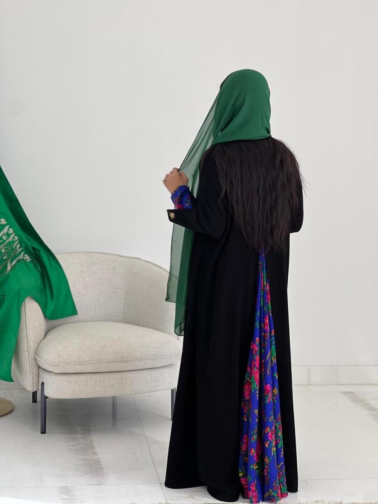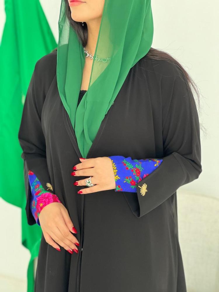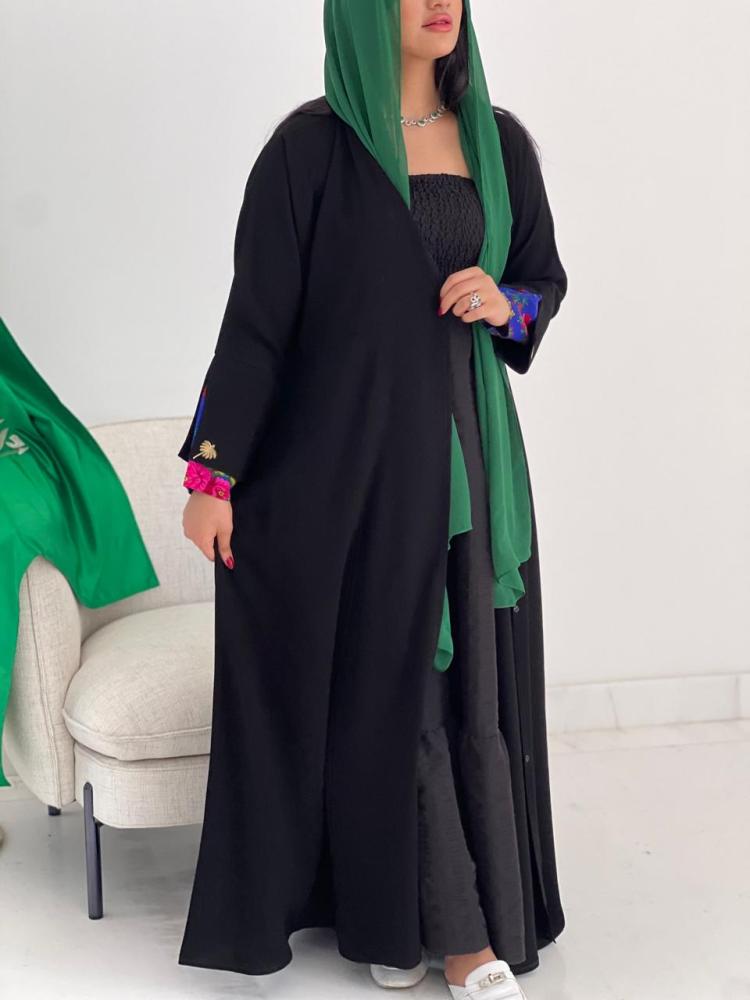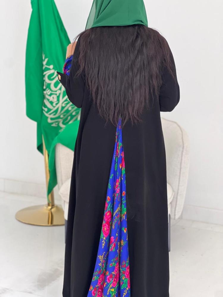 عباية مميزة وعملية القماش ملكي اسود مع ر...