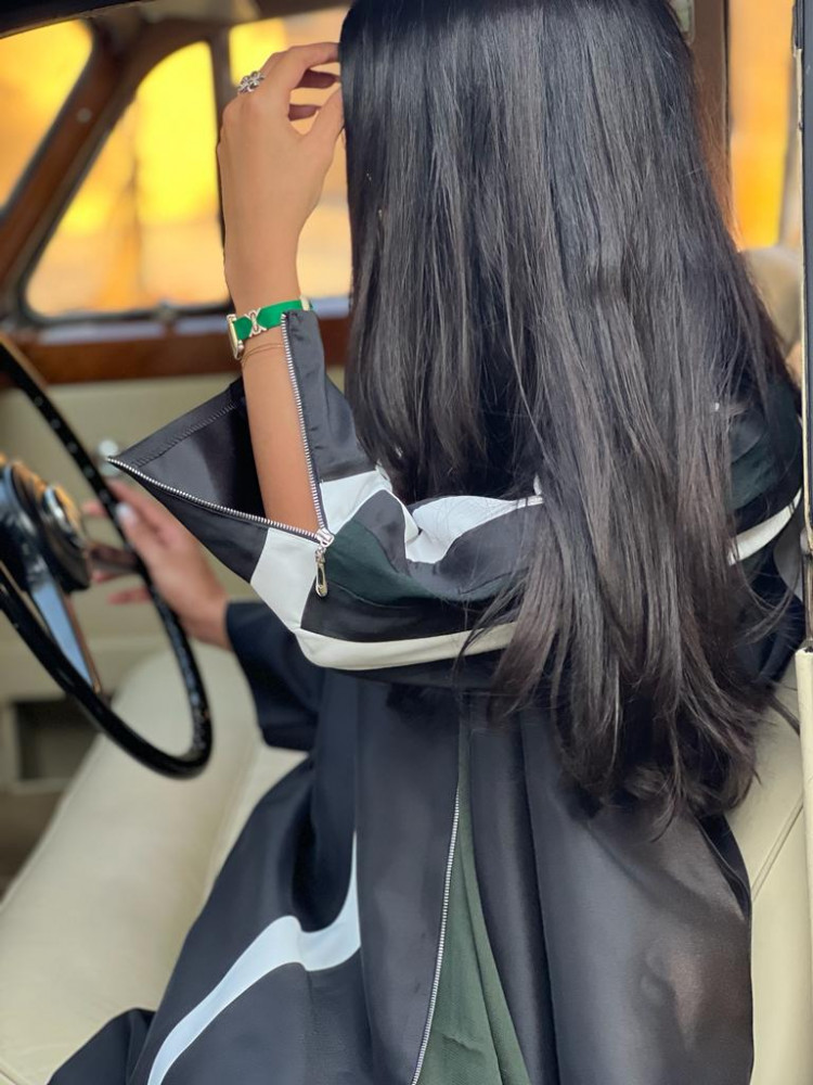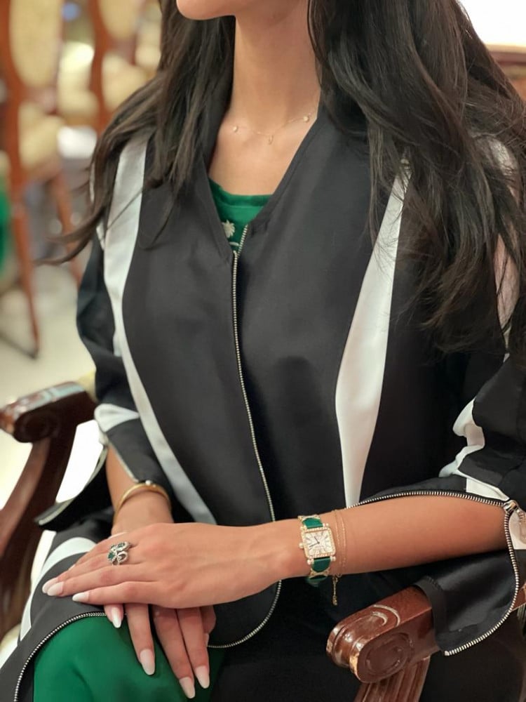 عباية مميزة القماش تفتة اسود وتقفل بسحاب
