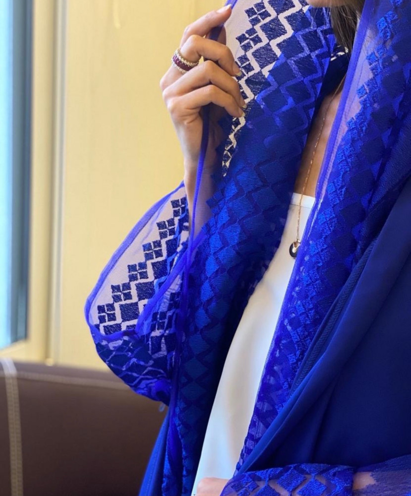 عباية مميزة اللون ازرق والأكمام تطريز