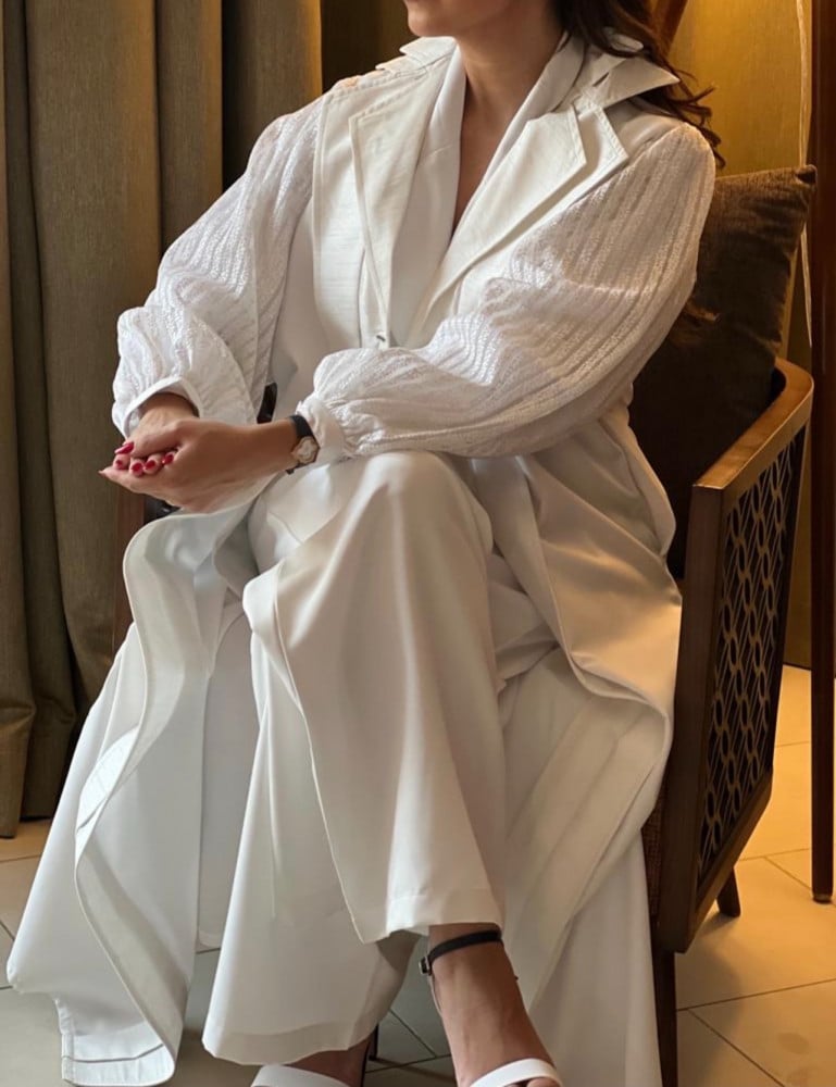 عباية فاخرة اللون رمادي و على الأكمام شك...
