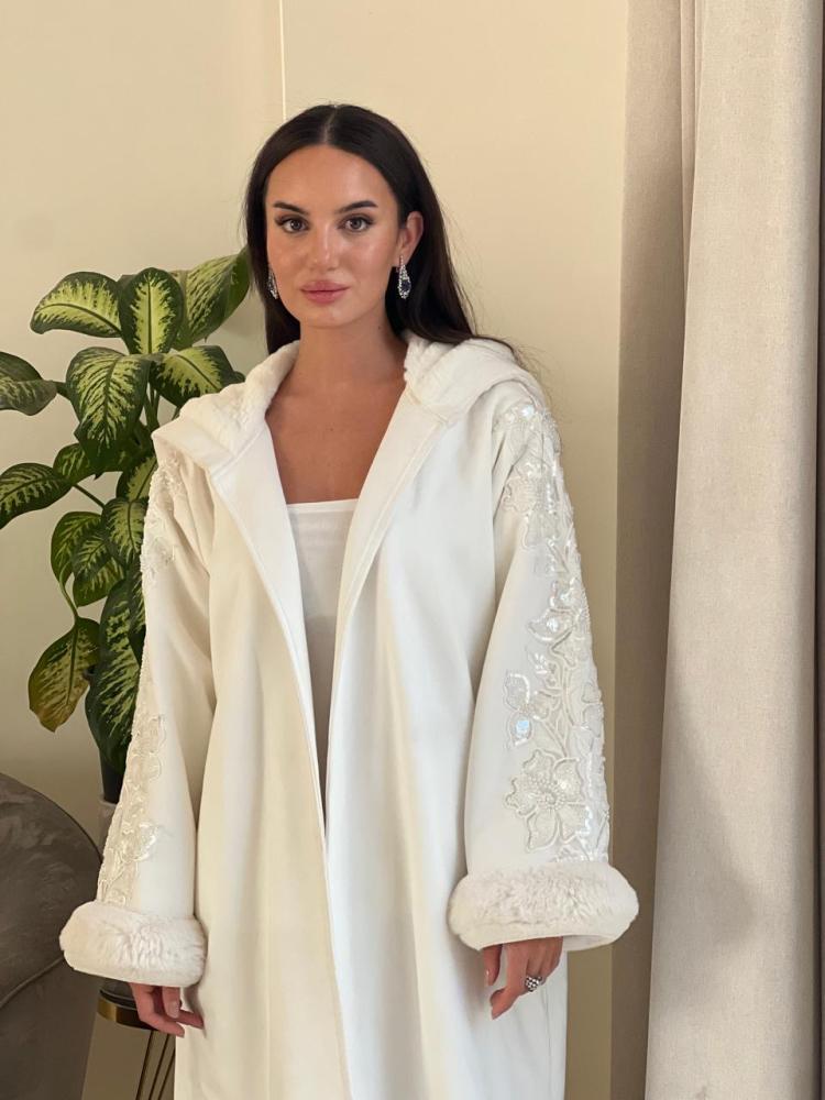 جلابية فاخرة اللون بيج مع تطريز وشك وعلى...