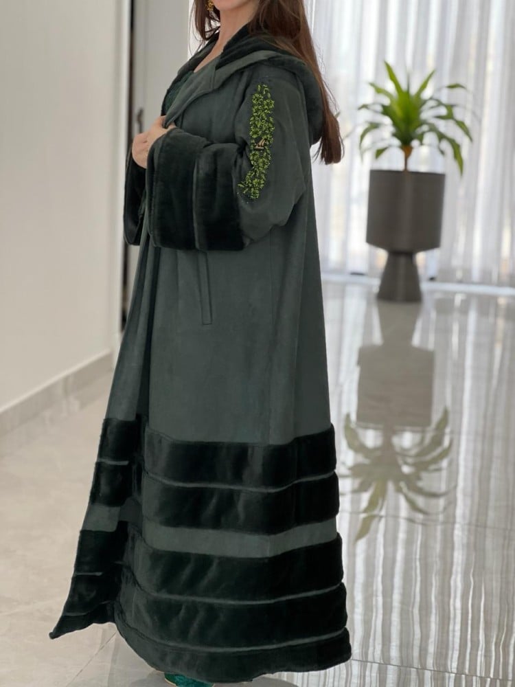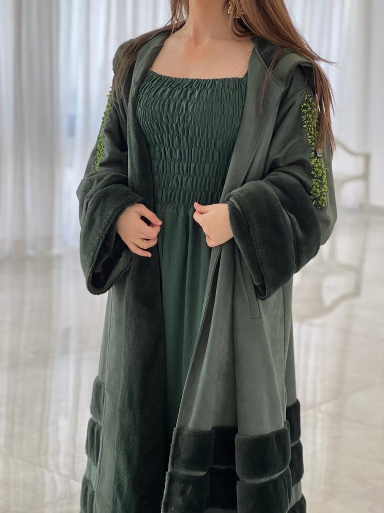 فروة فاخرة القماش شامواة اخضر مبطنه فرو اخضر مع شك