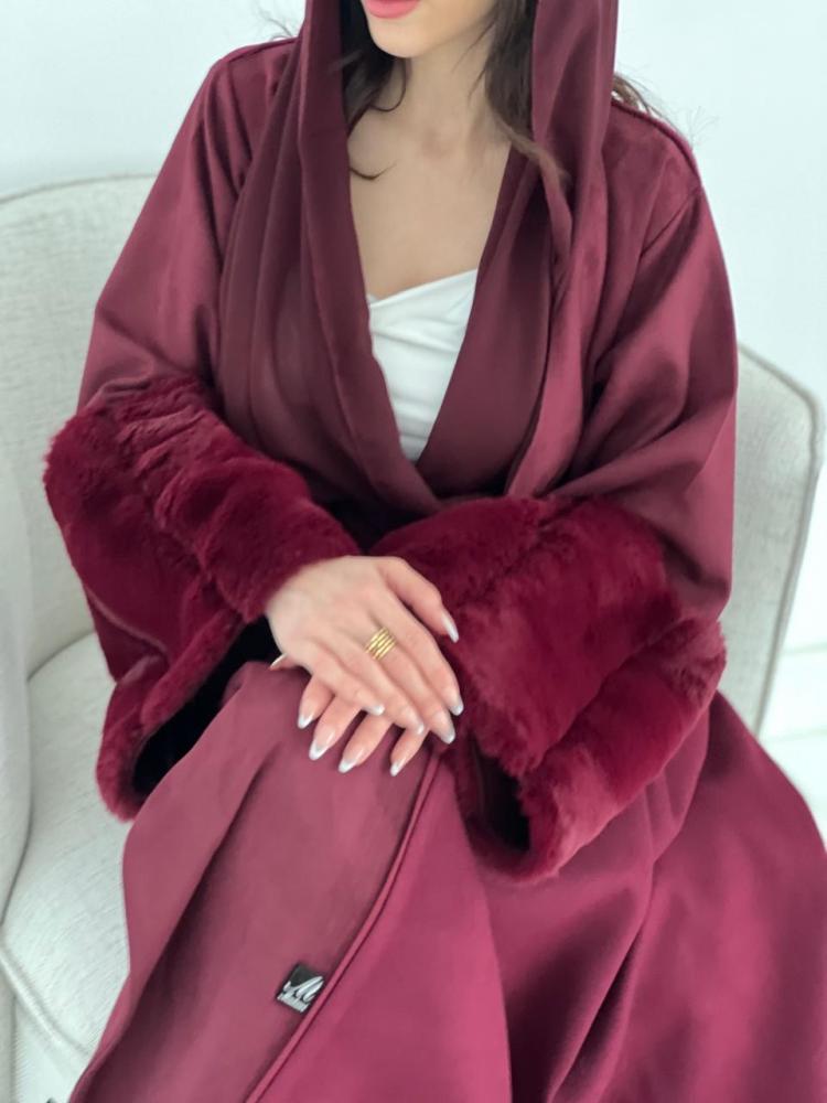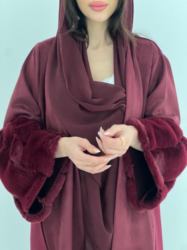 عباية شتوية بشامواه ومخمل زيتي وشك لولو...