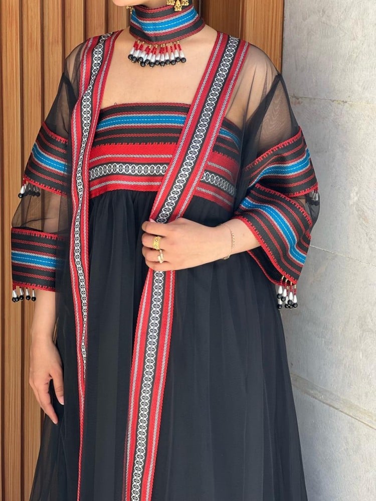 فستان تراثي قطعتين فستان داخلي و وشاح