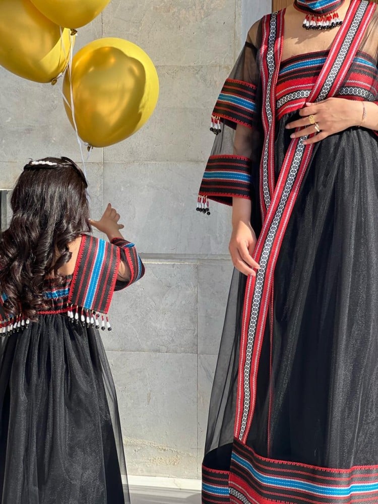 فستان تراثي للأطفال قطعتين فستان داخلي و وشاح