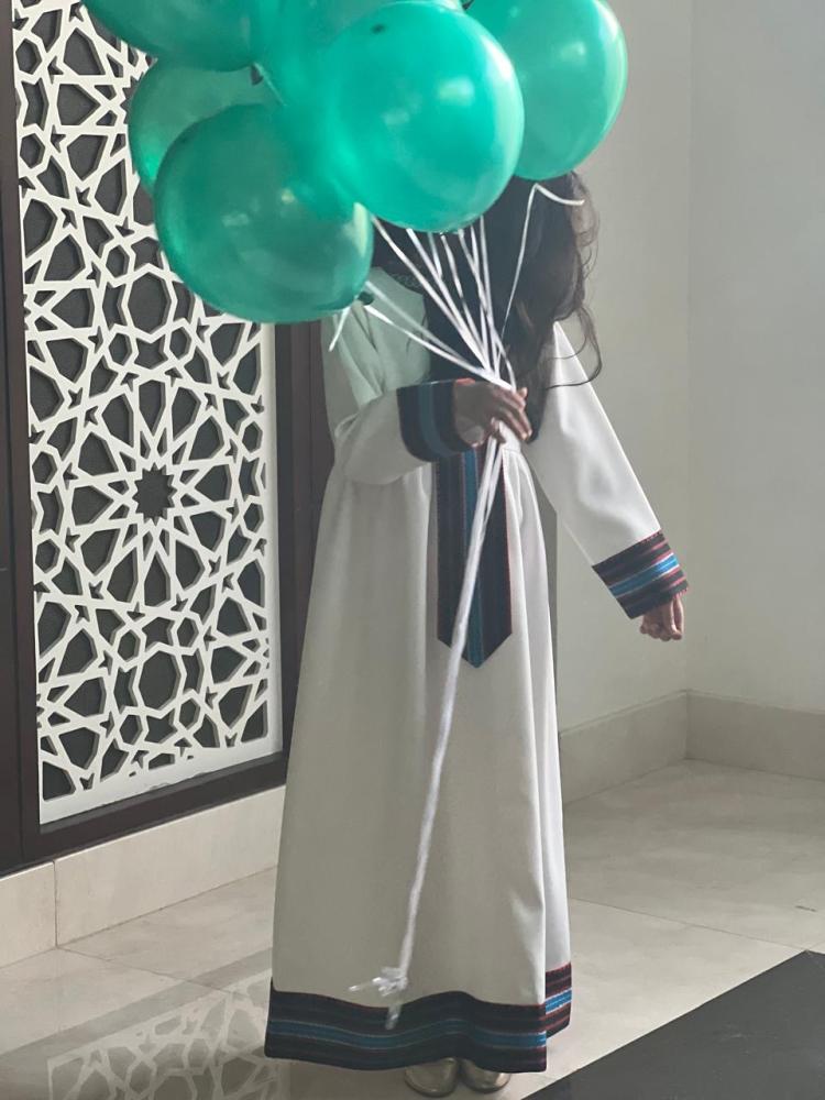 جلابية للأطفال القماش حرير سماوي مع شك ذ...