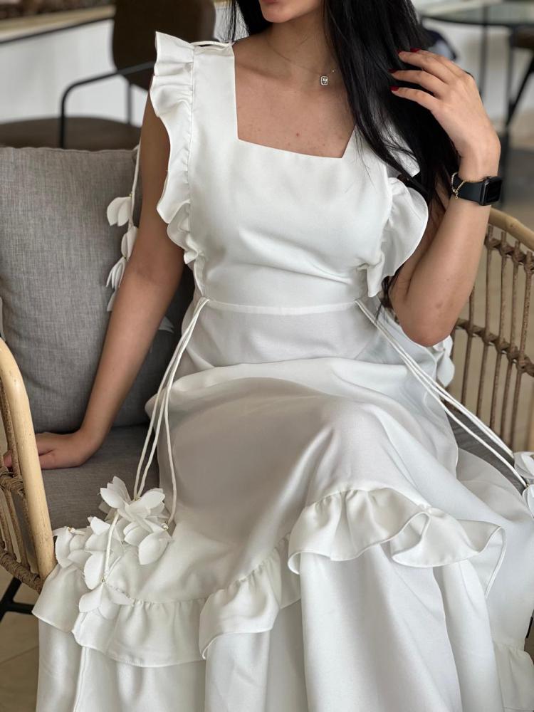 فستان عملي القماش كريب كتان سكري