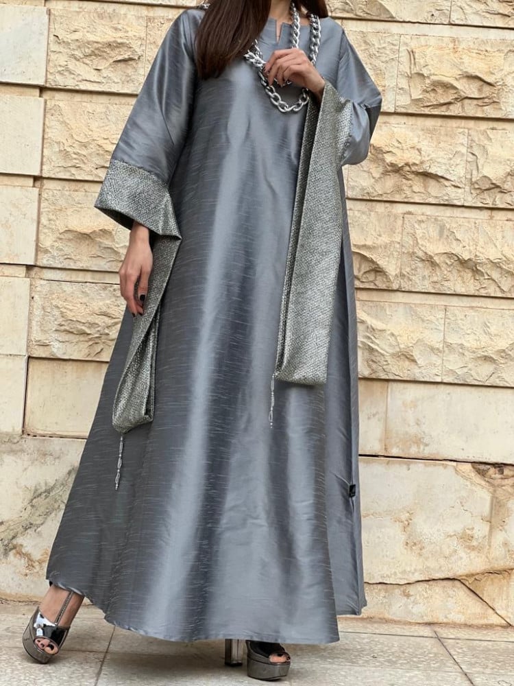 جلابية فاخرة القماش حرير سماوي مع شك ذهب...