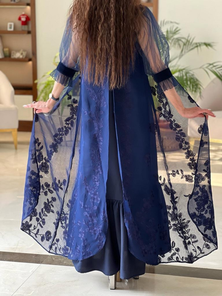 جلابية كريب كحلي ملكي
