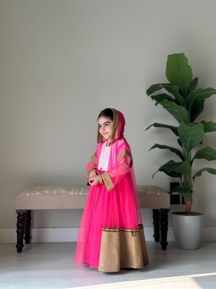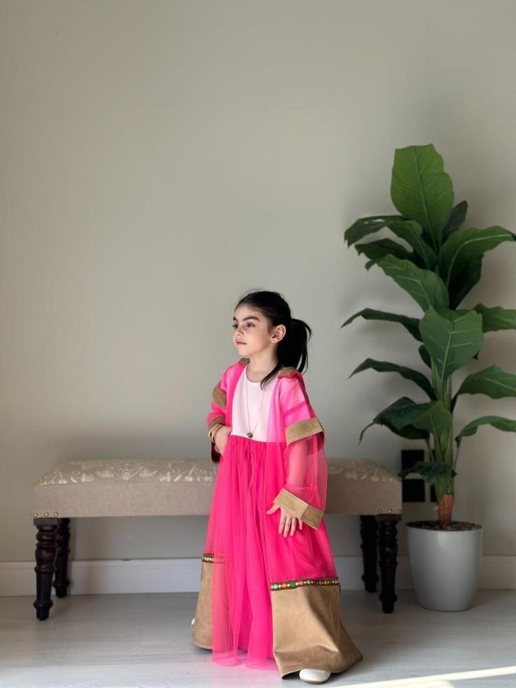 عباية صيفية باردة القماش تفته وردي ومحدد...