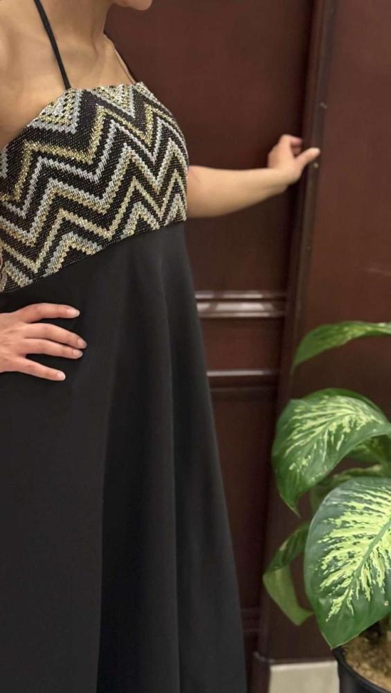 فستان فاخر اللون اسود مع تل مطرز اسود