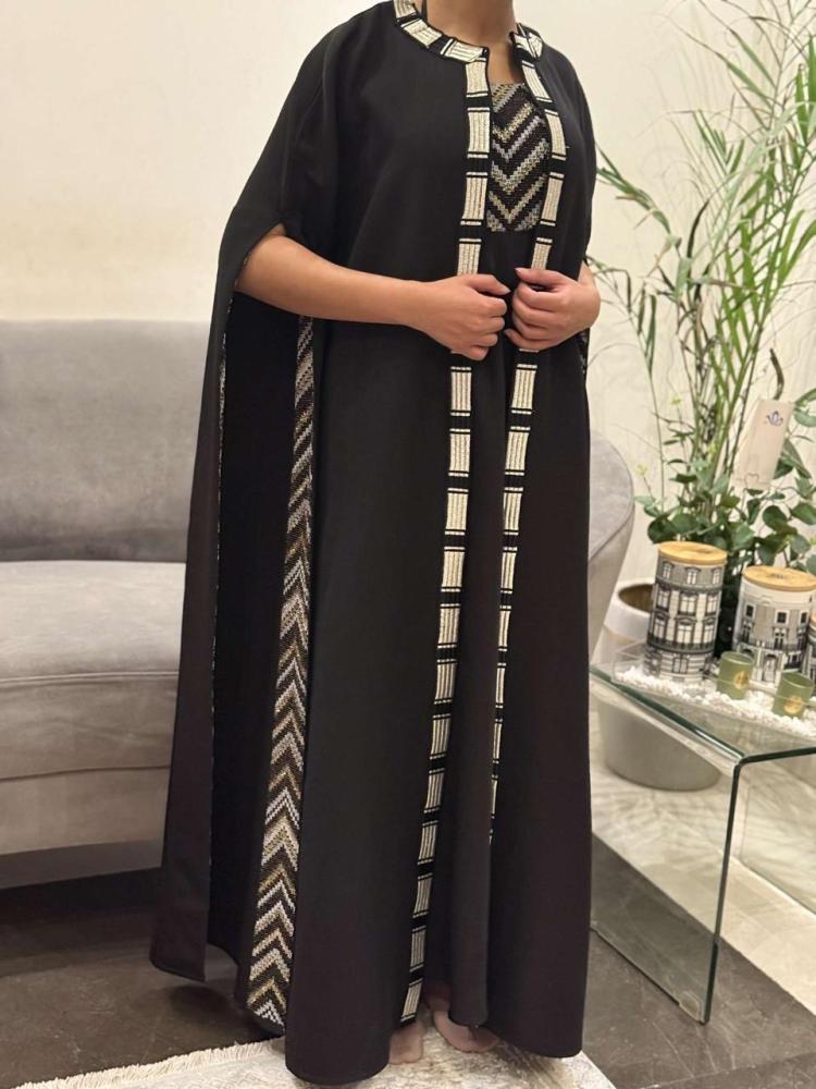 عباية فاخرة اللون رمادي مع اسود وعلى الا...