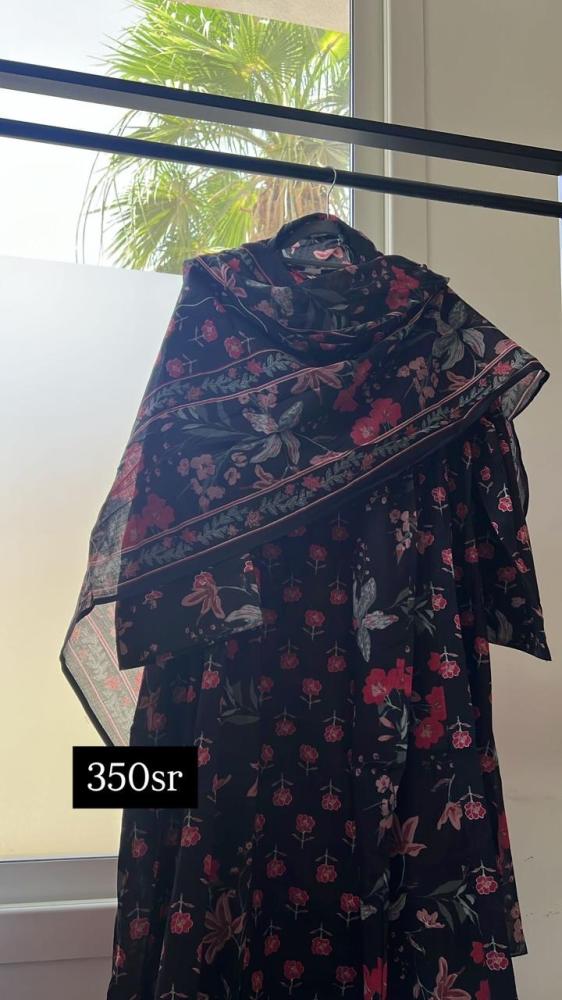 عباية صيفية باردة اللون كحلي محددة ورد م...