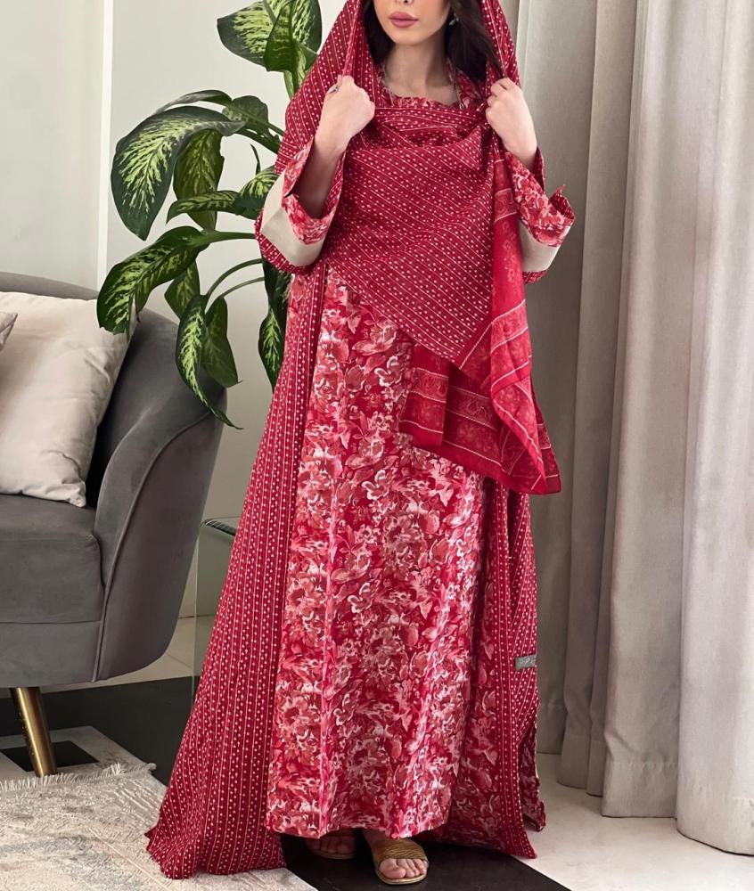 عباية مميزة اللون فوشي والاكمام والطرحة...