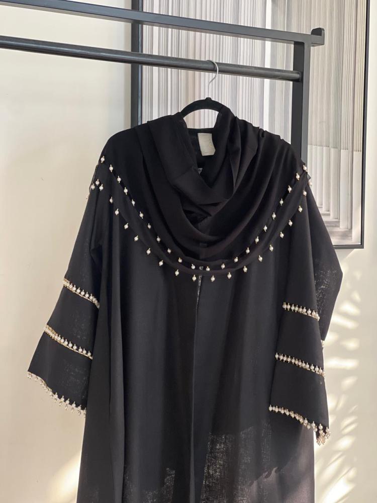 عباية مميزة وعملية قماش كريب كتان اسود (...