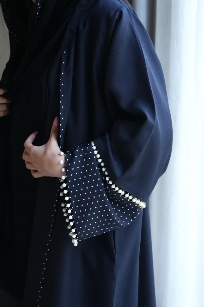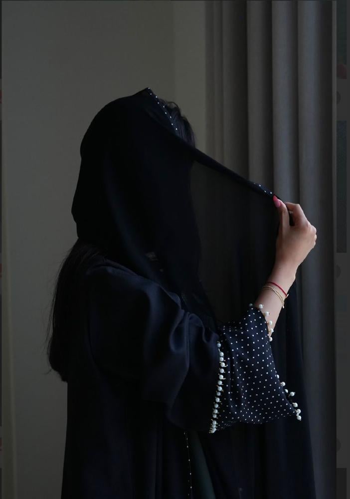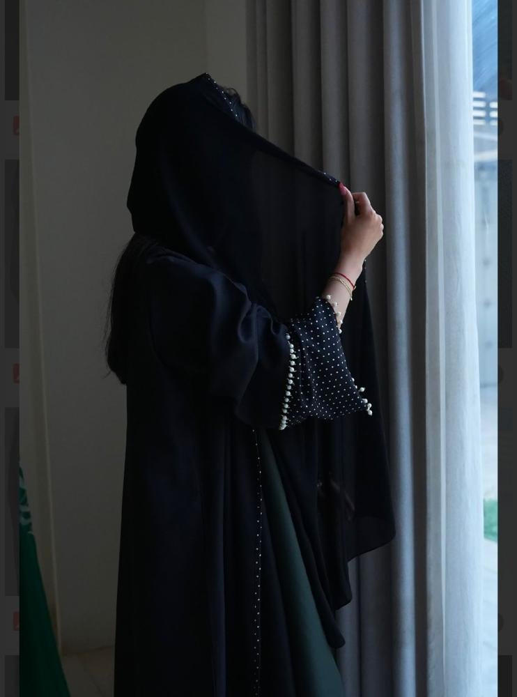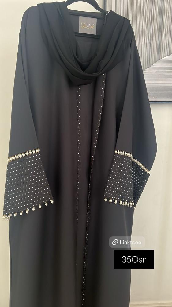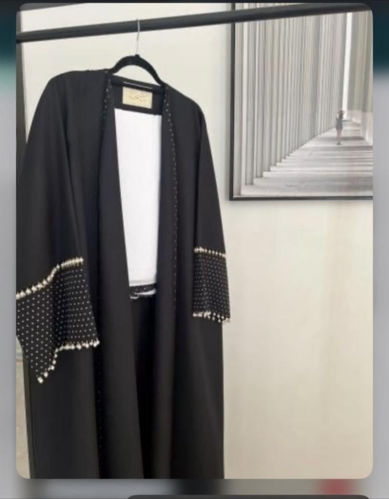 عباية فاخرة القماش كريب حرير اسود مع شك...