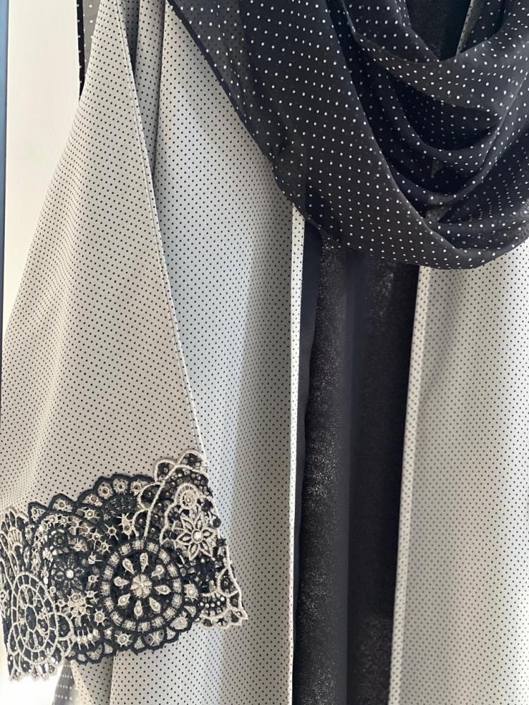 كريب ابيض منقط مبطن ( بديل للكلفة )