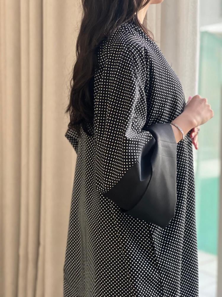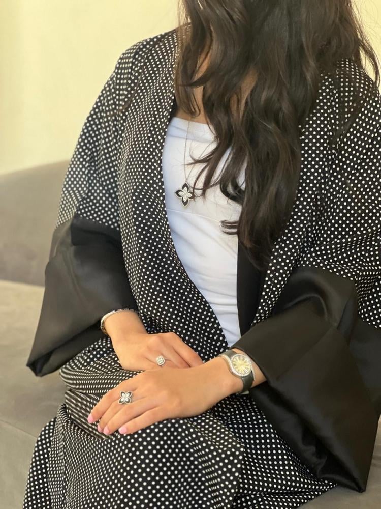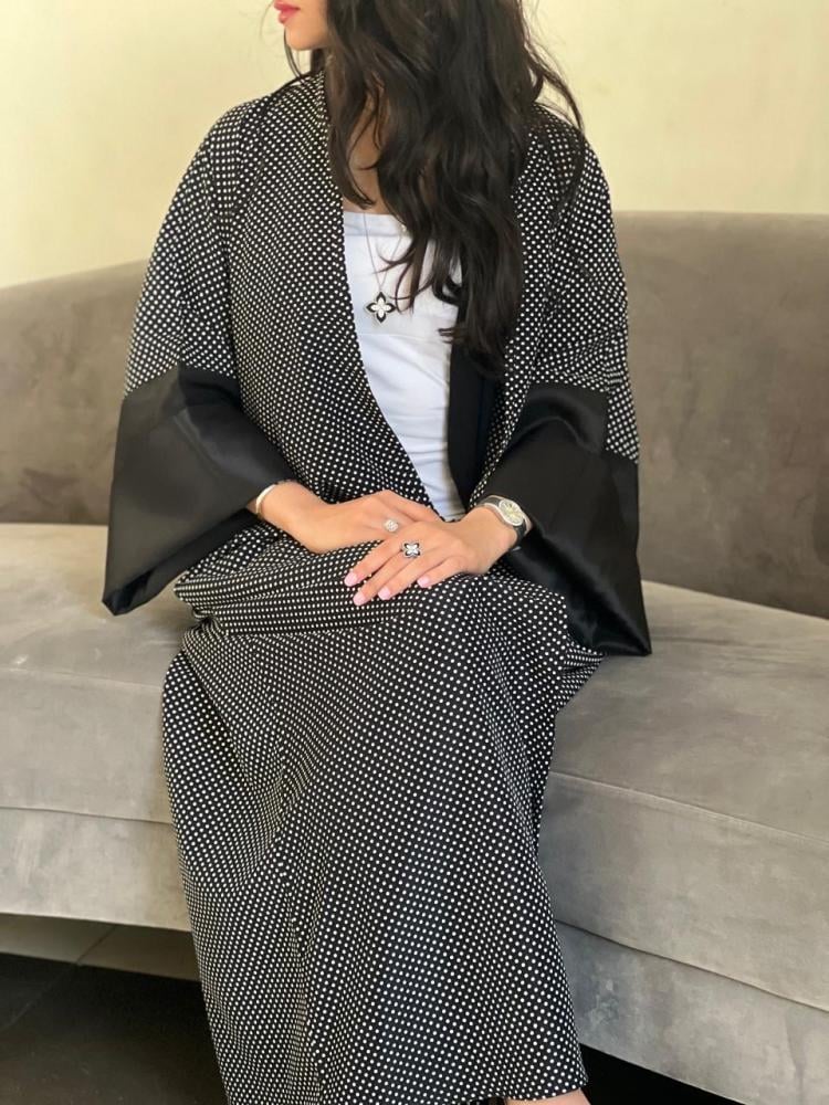 عباية اللون اسود محددة بقماش سدو وعلى وا...