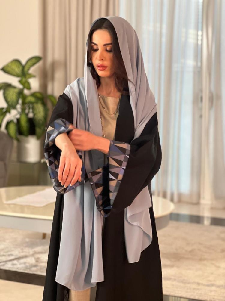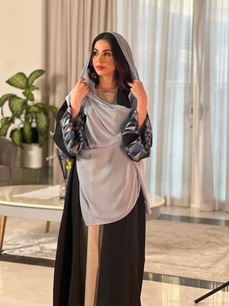 عباية فاخرة اللون رمادي مع اسود وعلى الا...