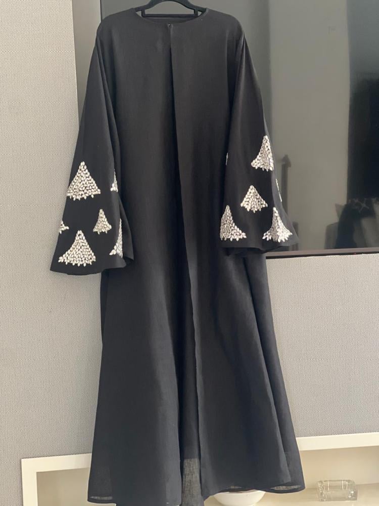 عباية صيفية باردة القماش لنن كحلي