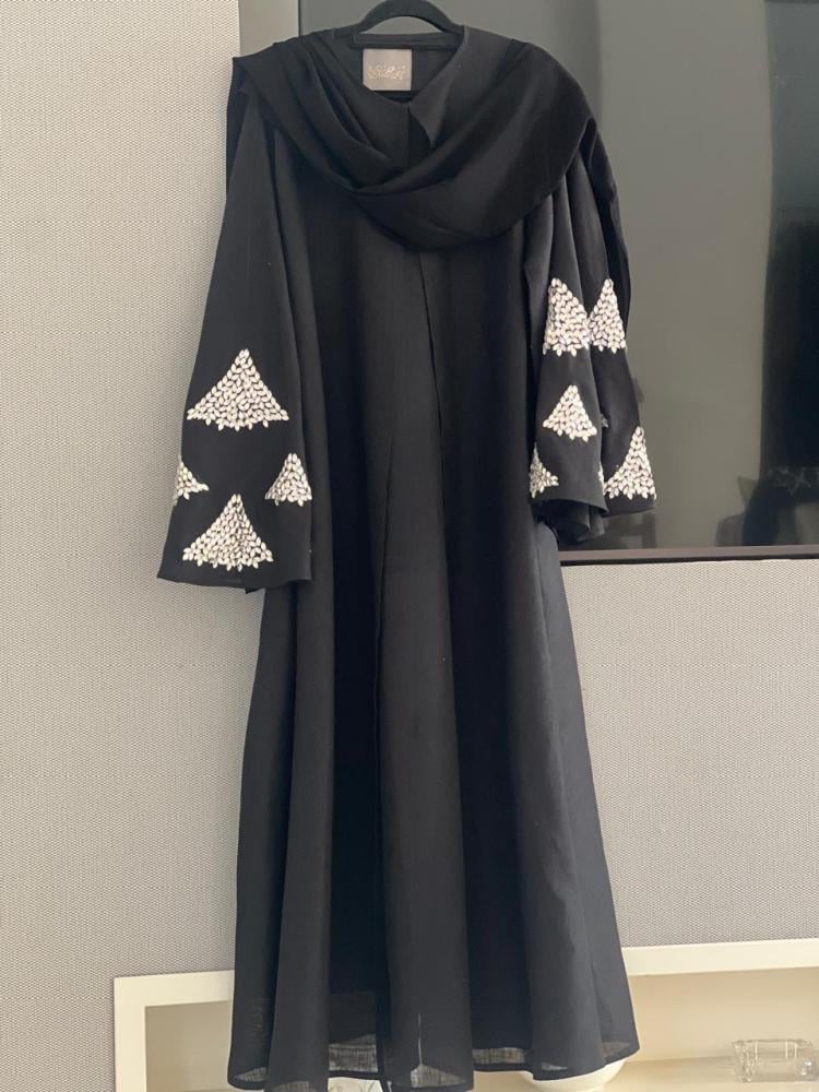 عباية مميزة اللون اسود والأكمام رمادي فا...