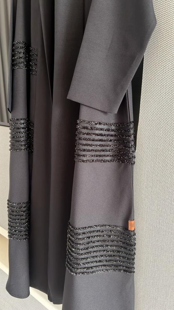 عباية فاخرة القماش لنن اسود مع شك وتطريز...
