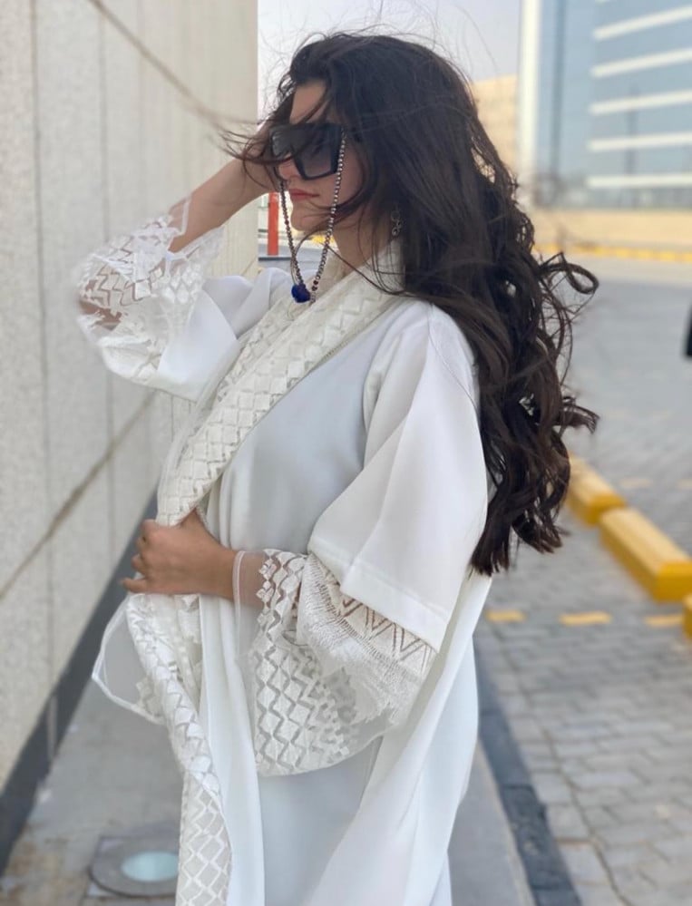 طقم 5 قطع ( عباية لنن ابيض - تل ابيض - ف...